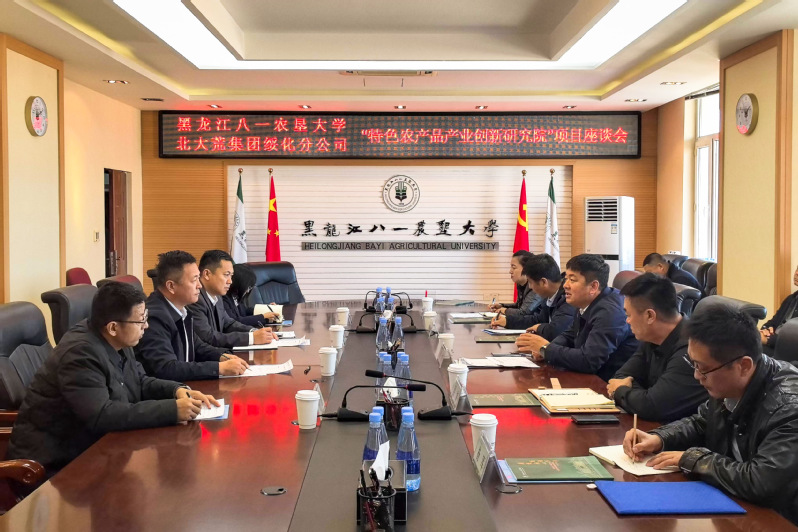 下午,北大荒集团绥化分公司党委委员、副总经理焦伟与副校长孙东波就项目内容进一步商讨。