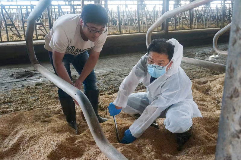 科技特派员曲永利教授在九三德胜牧场进行技术服务